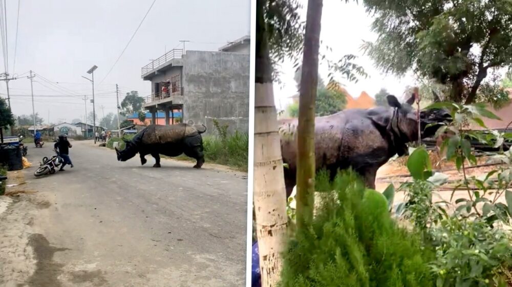 Cameraman in Nepal riskeert z'n eigen leven door losgeslagen neushoorn te filmen