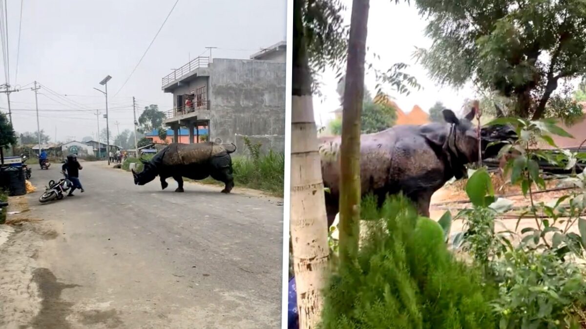 Cameraman in Nepal riskeert z'n eigen leven door losgeslagen neushoorn te filmen Dieren