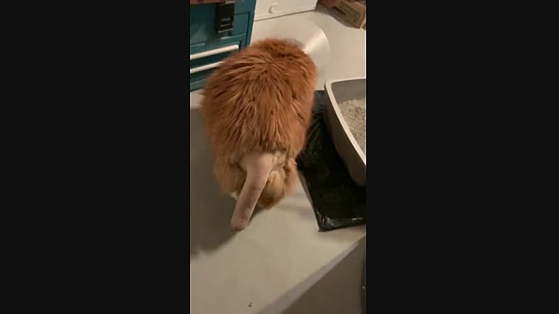 Dit beestje mocht naar de dierenarts vanwege een beschadiging aan het puntje van zijn staart en kwam terug met een geschoren staart. Hetgeen op iets heel anders lijkt.