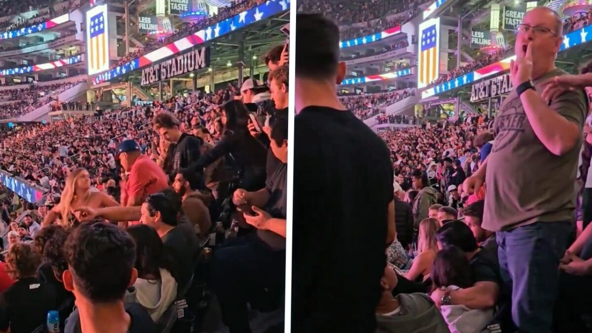 Terwijl de menigte in het AT&T Stadium toekeek hoe bokslegende Mike Tyson en YouTube-ster Jake Paul elkaar te lijf gingen, speelde zich op de tribune een minstens zo explosief gevecht af. Een man en een vrouw raakten zo oververhit dat de beste stoot van de avond niet in de ring plaatsvond, maar gewoon tussen de hotdogs en de bierbekers. Geen idee waar dat ruzietje over ging, maar deze klap zat er in ieder geval goed op.