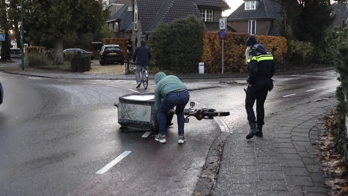 Donderdagochtend in Baarn: de Eemnesserweg en Nieuw Baarnstraat transformeerden in een winterse survivalbaan. Dankzij de vorst in de grond gingen tientallen fietsers, waaronder flink wat bakfietsen vol kroost, spectaculair onderuit.