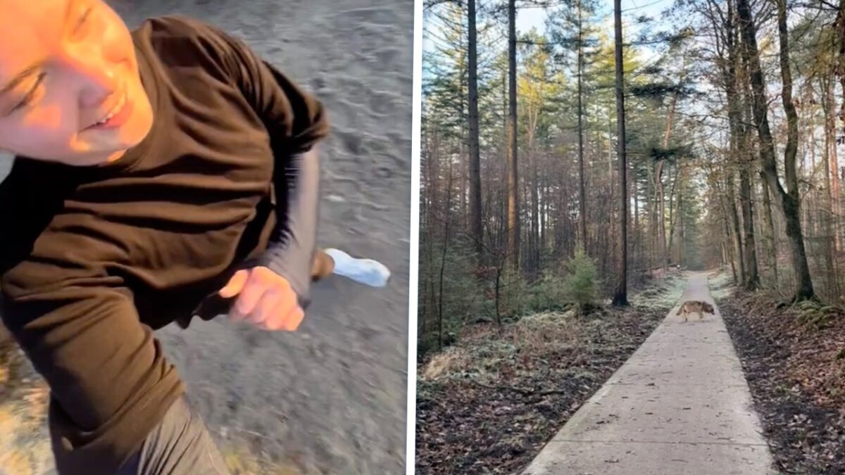 Vrouw achtervolgd door een wolf tijdens rondje hardlopen op de Veluwe