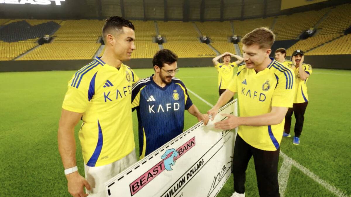 In een nieuwe video van MrBeast, die in het eerste uur dat 'ie online stond al meer dan 5 miljoen views had, wordt een fan uitgedaagd voor een potje scherp schieten tegen Cristiano Ronaldo. Natuurlijk is het niet een gewoon spelletje voor de gezelligheid, want als 'ie wint dan kan hij 1 miljoen dollar op z'n bankrekening laten bijschrijven.