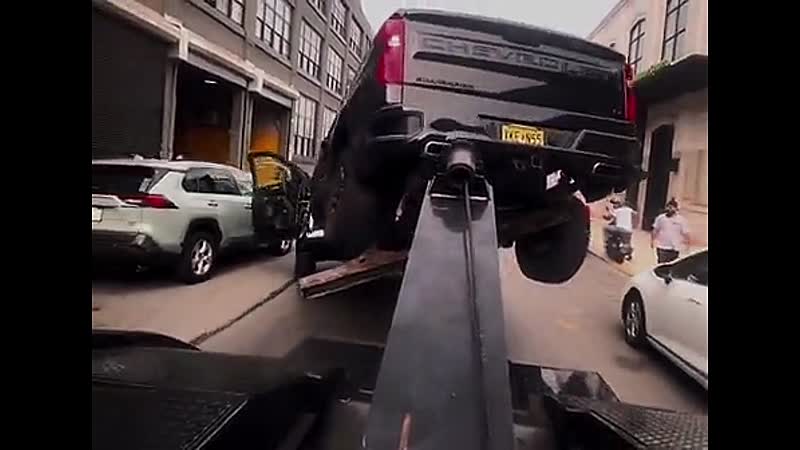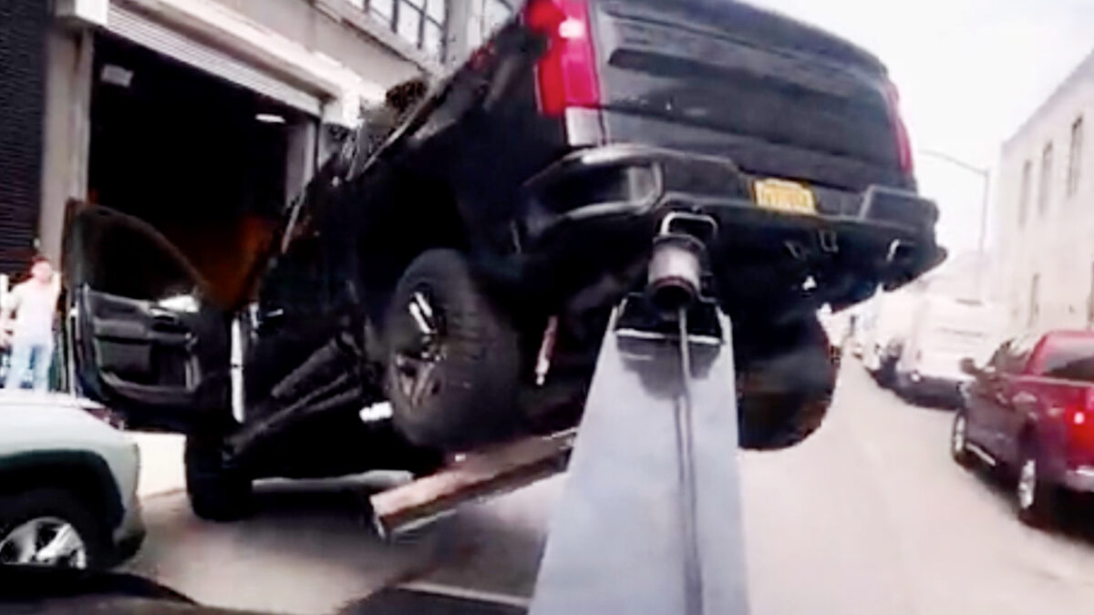 Dat je auto wordt weggesleept is al vrij zuur, maar deze eigenaar van een pickup was niet van plan om z'n schatje zomaar mee te laten nemen.