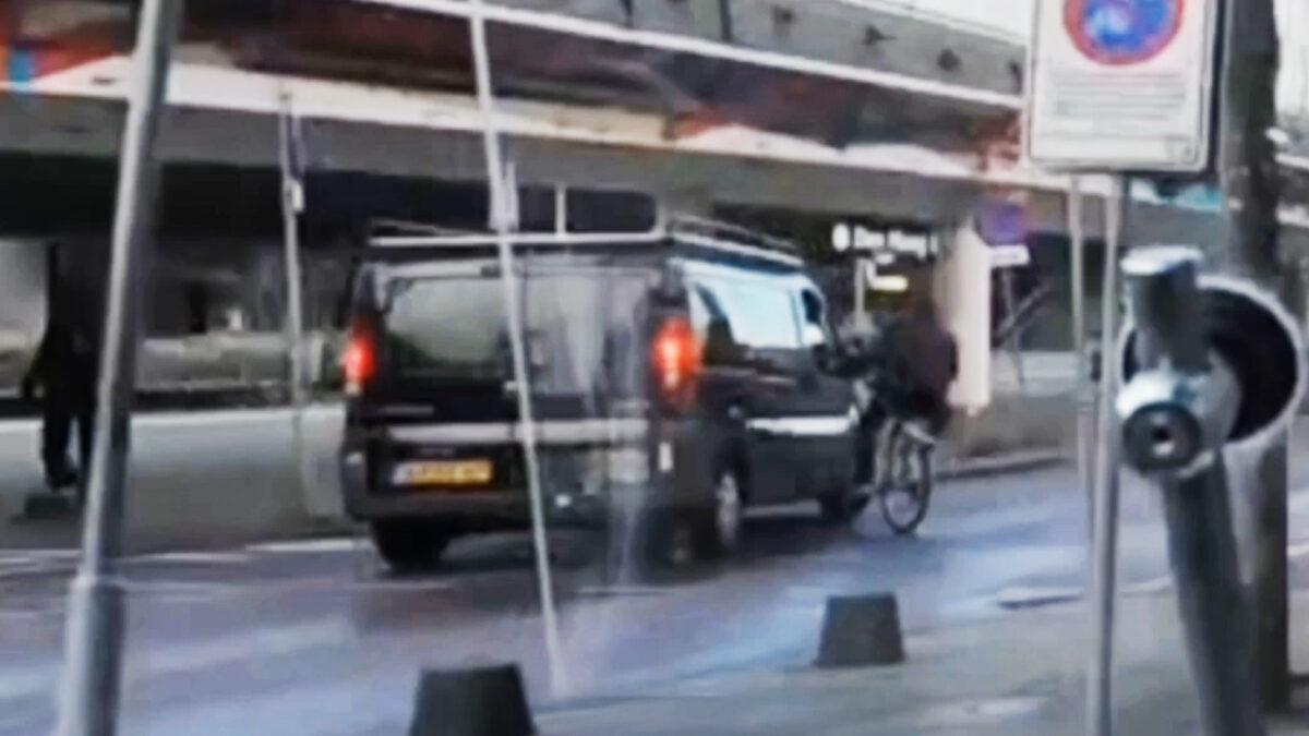 Busje met haast rijdt fietser bijna dood bij station Hollands Spoor in Den Haag