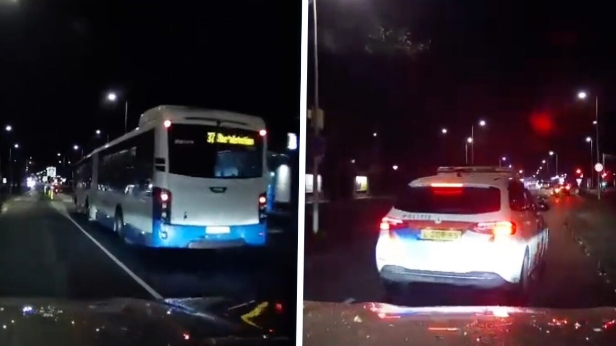 Instant karma voor automobilist die spookrijdend een stilstaande bus inhaalt