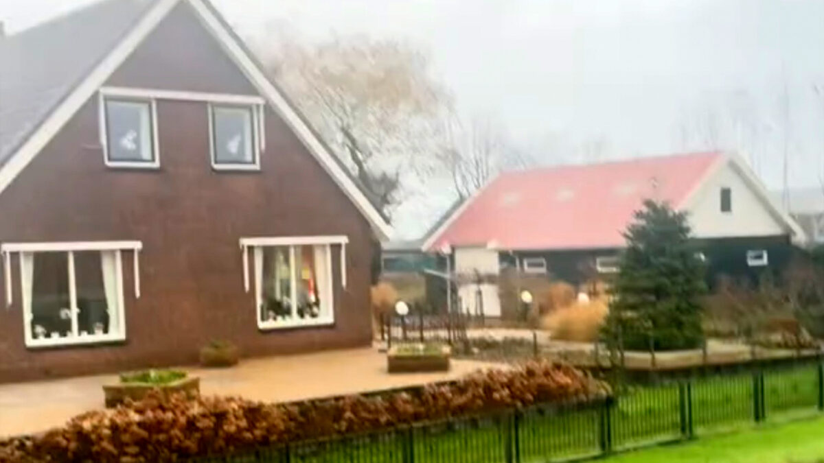 Buurman geniet 's ochtends vroeg van een natuurfilm met de gordijnen wagenwijd open