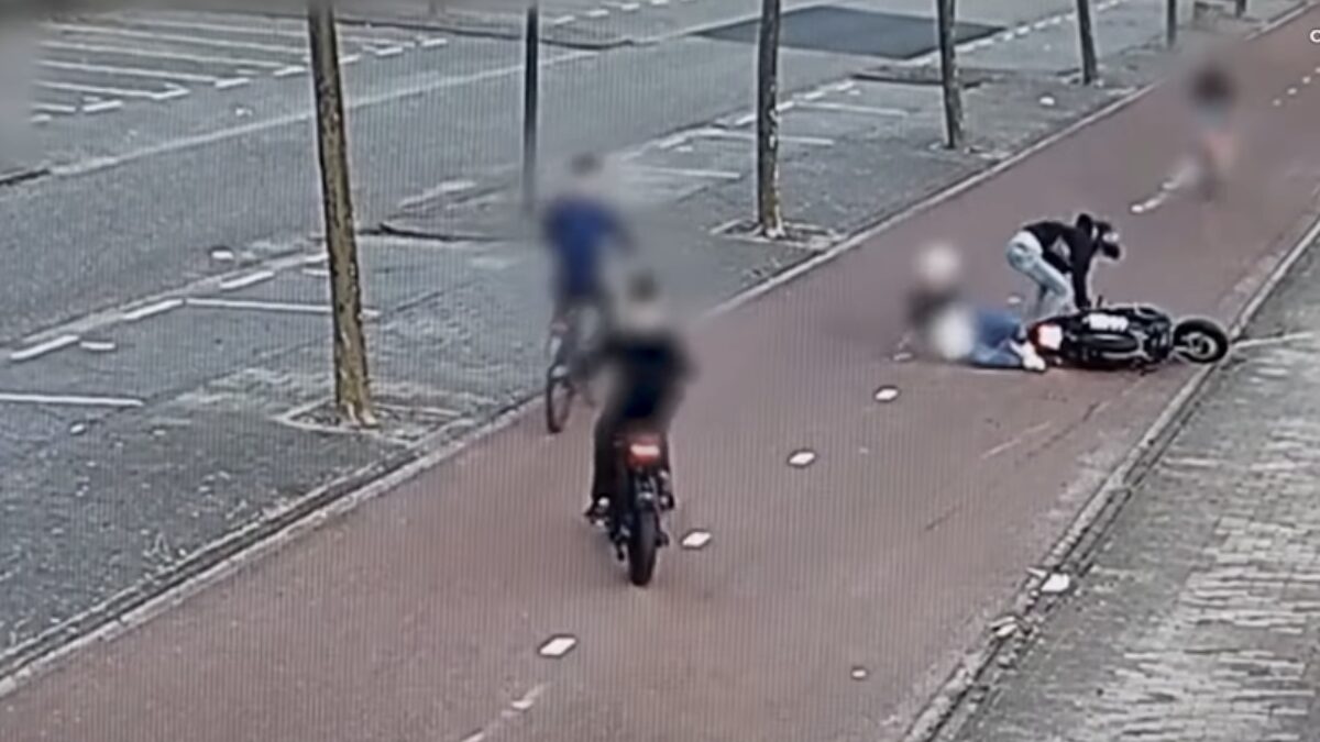 De politie zoekt iemand die meer weet over de deze snorscooter-stumper. Opvallend is dat een meisje of jonge vrouw bij hem achterop zat, al is zij onherkenbaar gemaakt. De bestuurder zelf is vermoedelijk nog geen twintig, heeft een lichte huidskleur en droeg mogelijk een bril. Ook zou de scooter, door de val, schade kunnen hebben opgelopen. Ken jij deze combinatie van verdachte en passagier, of heb je een ander waardevol hint? Meld je dan, al is het anoniem.