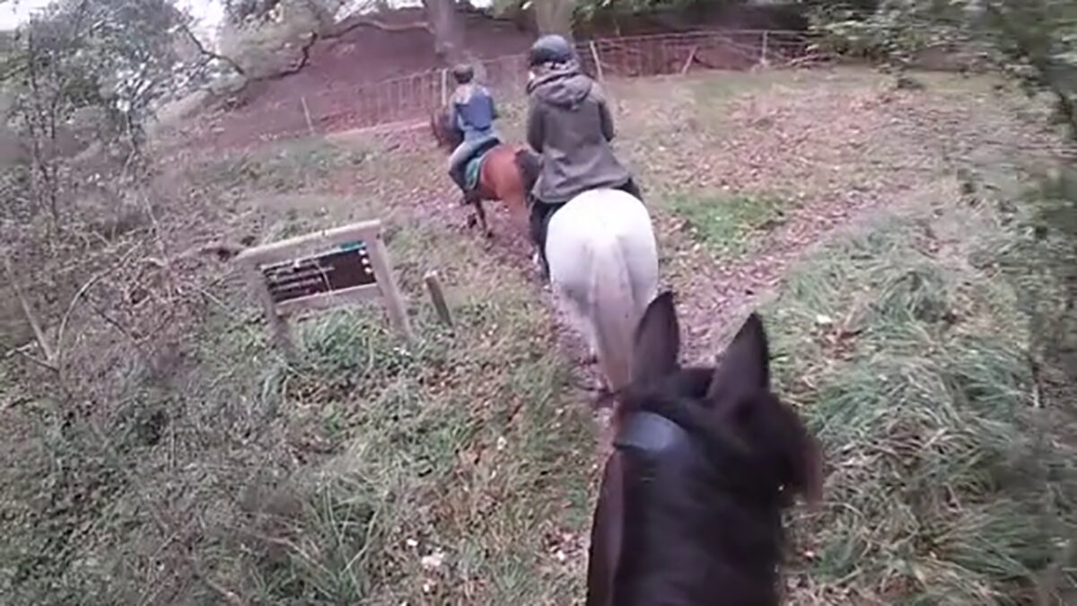 Het leven van een paardenmeisje gaat niet altijd over rozen, of in dit geval, over soepel galopperende ritjes door de natuur. Een jonge ruiter weet dat nu maar al te goed, nadat ze van haar paard werd gegaloppeerd. Met zijn staart tussen zijn benen rent het paard weg, omdat zijn harige vrienden bang zijn voor twee uit de kluiten gewassen koeien. Boehoe!