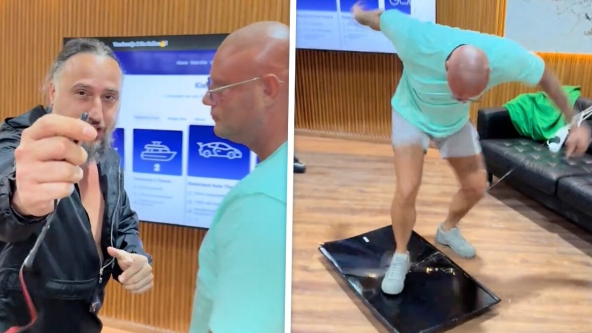 Alex Soze krijgt kortsluiting en rost televisie van cursusverkoper Sait in elkaar