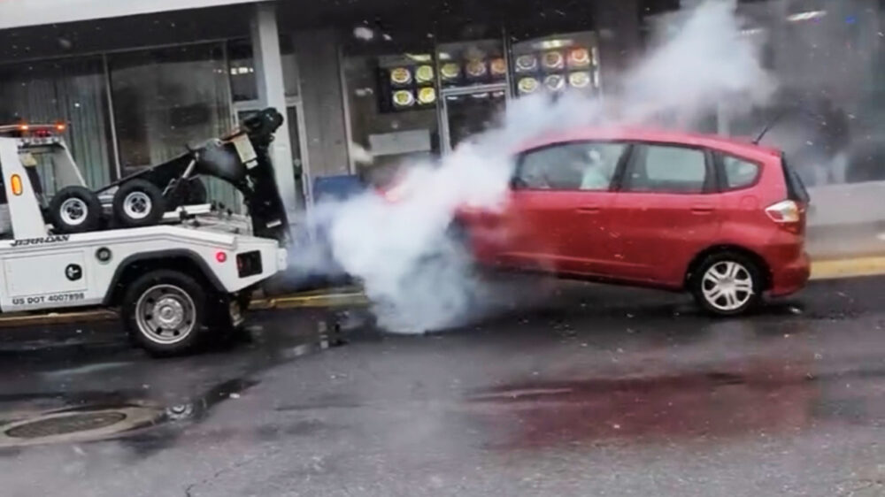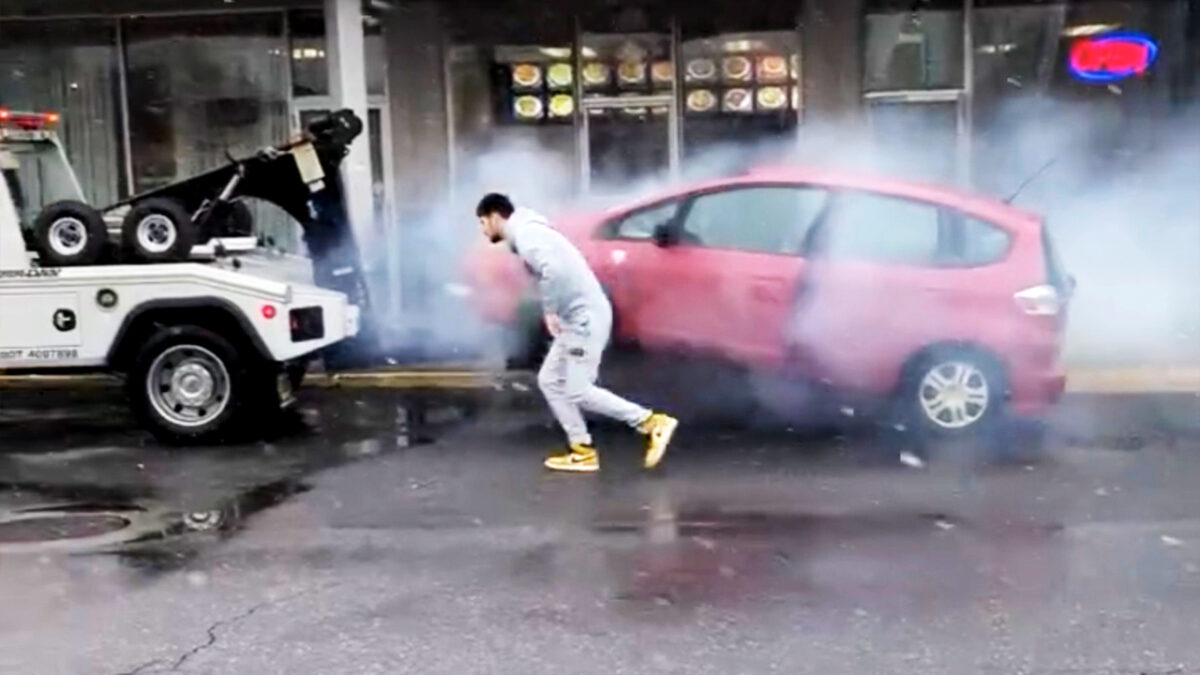 Gefrustreerde bestuurder gaat full retard tijdens wegsleepactie