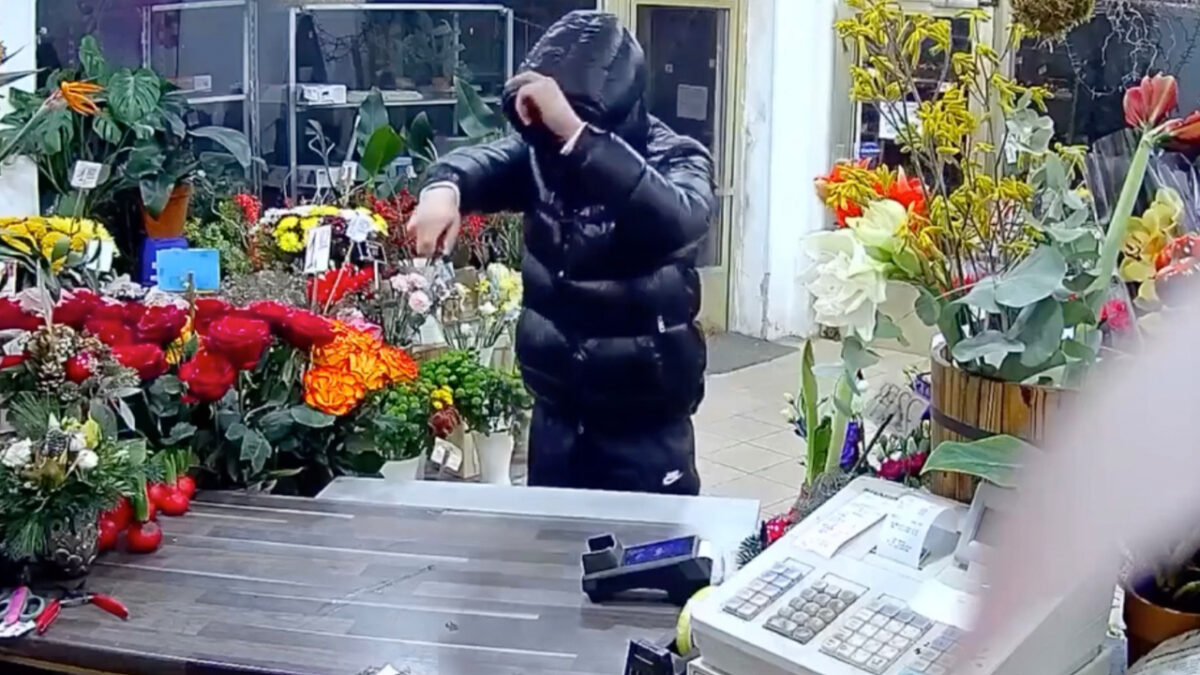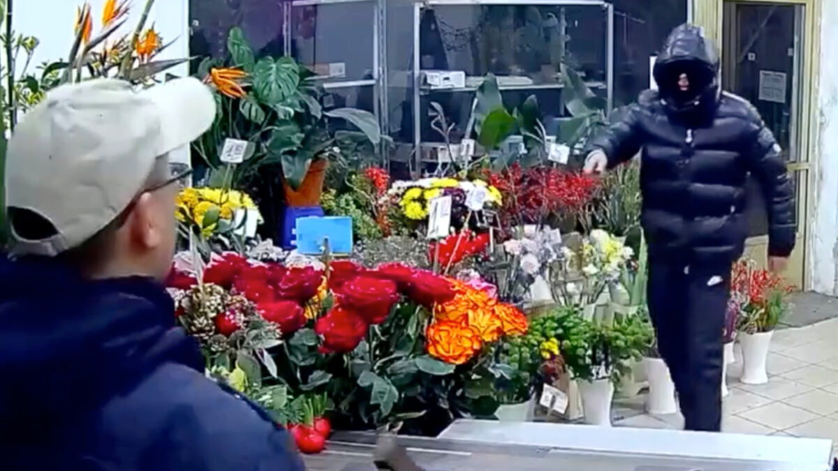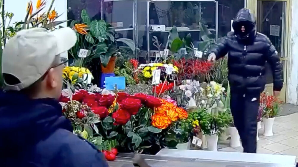 Heldhaftige eigenaar Berlijnse bloemenzaak werkt gewapende overvaller zijn winkel uit met een bijl