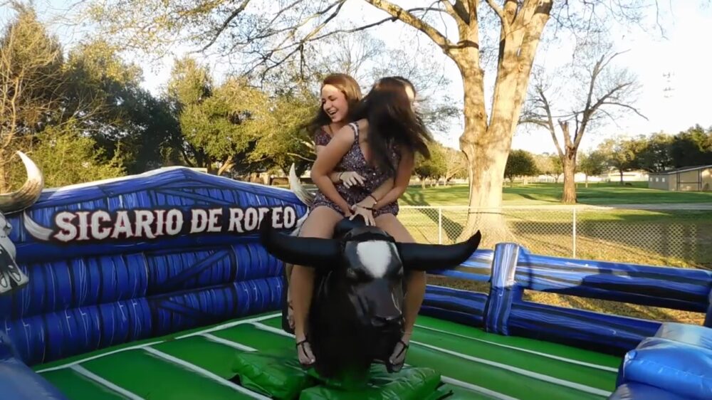 Je bent ze ongetwijfeld al eens tegengekomen of hebt er wellicht al eens opgezeten: rodeostieren. Geen echte, gevaarlijke jongens maar de op afstand bestuurbare kermisattracties. Om de een of andere reden maakt vrouwelijke berijders die dingen extra leuk om naar te kijken...