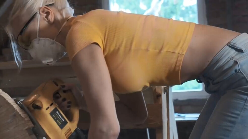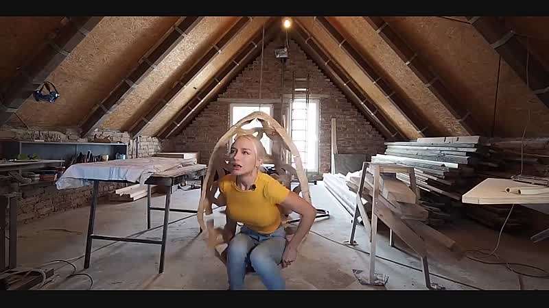 Onze Russische blonde doe-het-zelver, die maar moeilijk stil kan zitten, maakt vandaag uit het niets een echte designer hangstoel. Potverdomme mooi Russisch product, ofnie?