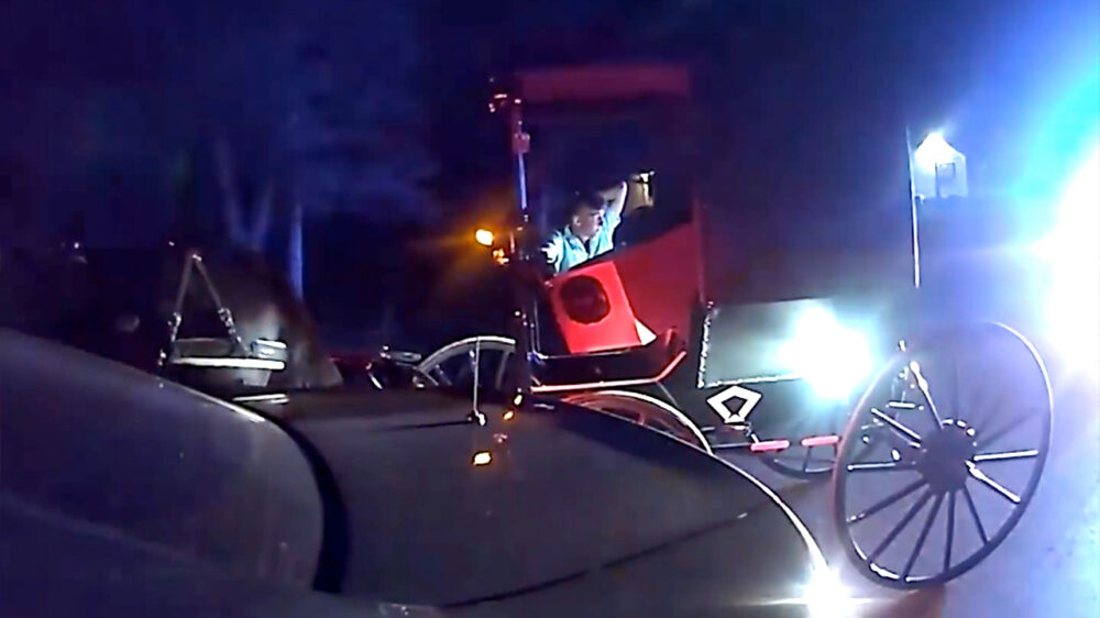Bezopen Amish man doet een DUI'tje en ramt politiewagen met zijn paard en wagen
