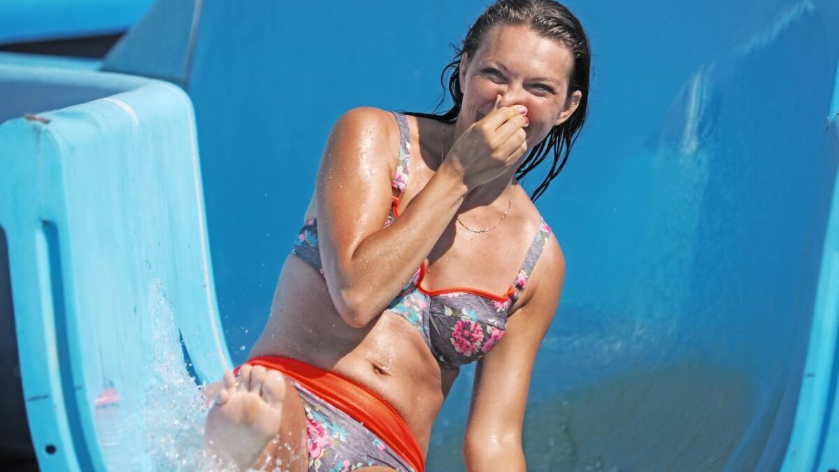 Kijk ze gaan: Moeder en d'r vier kinderen maken ritje van de waterglijbaan