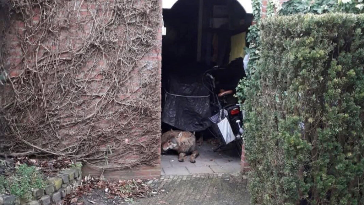 Bewoner in Hengelo vindt een slapende wolf in haar schuurtje