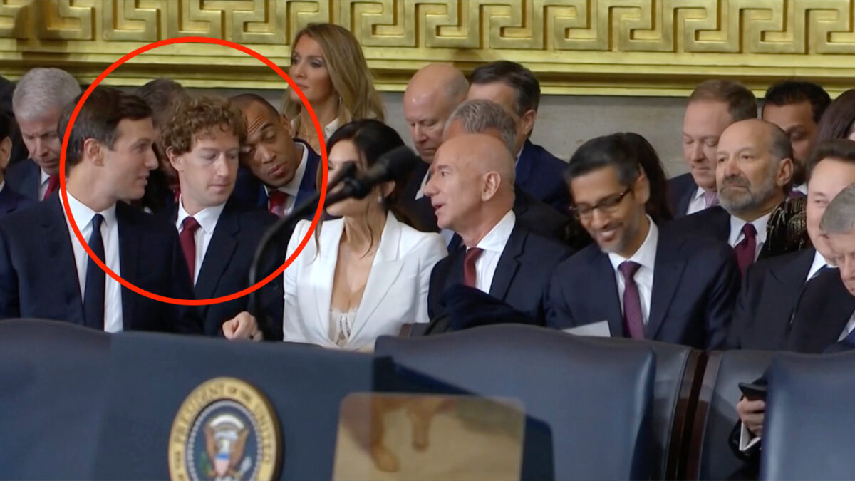 Het nieuws van gisteren was toch eigenlijk wel dat Meta-eindbaas Mark Zuckerberg tóch een mens blijkt te zijn. Vorige week kondigde hij al aan zijn enigszins omstreden policy op Facebook aan te passen en gisteren werd 'ie tijdens Trumps inauguratie keihard betrapt terwijl hij grijnzend naar het decolleté van Lauren Sánchez (verloofde van Amazon-baas Jeff Bezos) gluurt. Zou 'ie dan toch geen robot zijn? 🧐