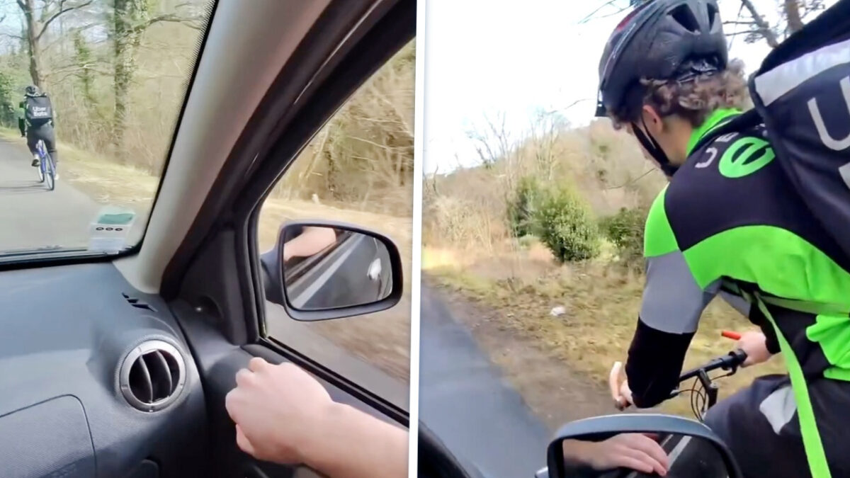 Bezorger van Uber Eats de greppel in geduwd door een hinderlijke automobilist
