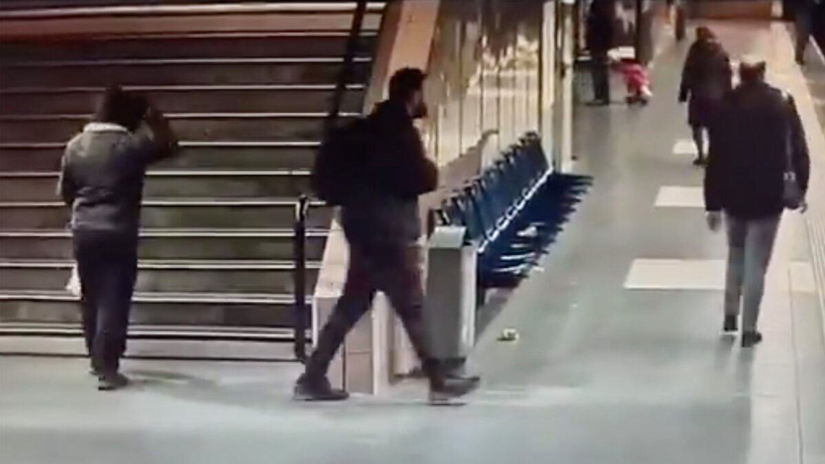 Onbedoelde botsing op station eindigt in chaos: hondsdolle gek steekt man in zijn nek (VIDEO)