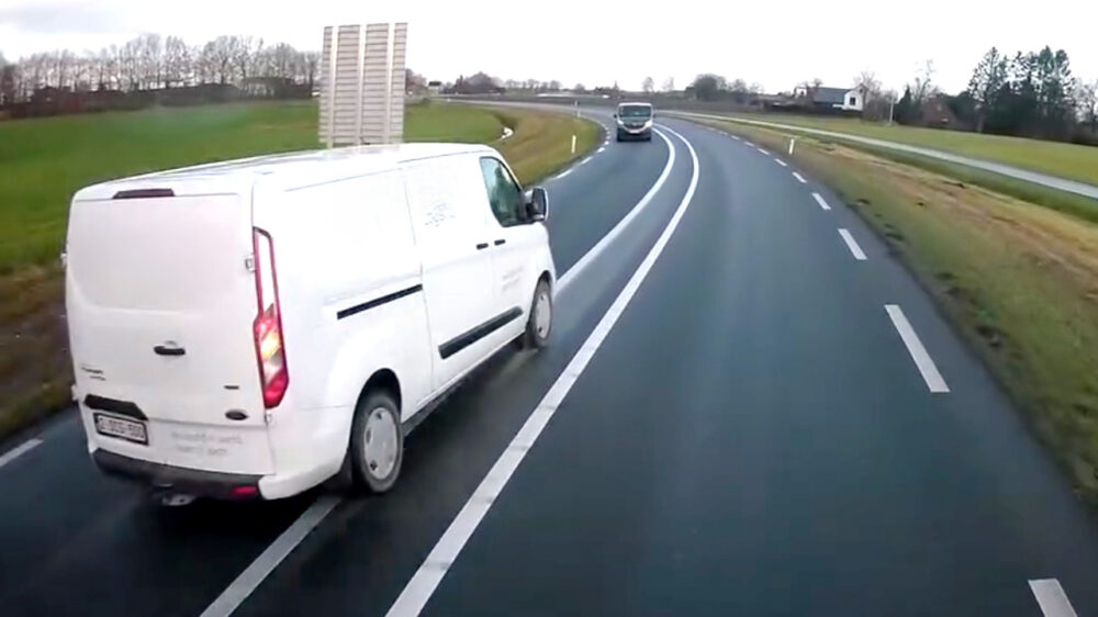Onlangs zagen we al een idioot in een Corsa die tot nu toe de gevaarlijkste inhaalactie van 2025 maakte, maar deze verkeershufter in z'n witte busje (verrassend) doet er misschien wel een schepje bovenop. Het is dat er een paar millimeter speling was, maar de kans dat je zo'n frontale aanrijding overleeft is niet heel groot.