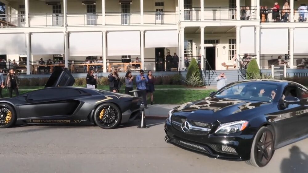 Een Mercedes AMG C63 automatisch laten parkeren tussen 2 Lamborghini's zorgt voor zweethandjes