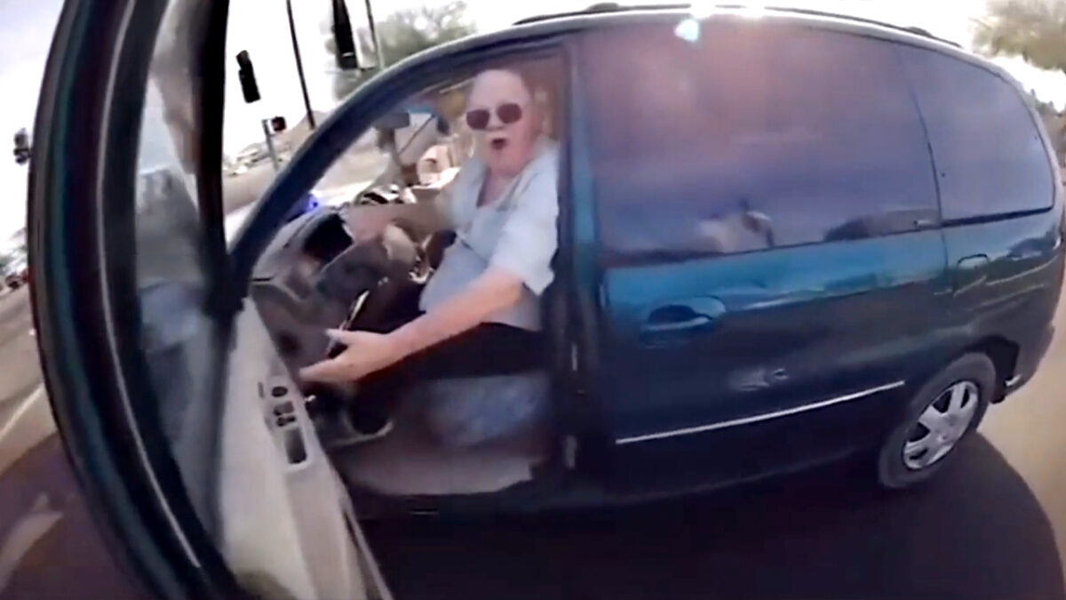 Je zou denken dat opa's zich bezighouden met vissen, kruiswoordpuzzels of het voeren van de duiven, maar deze bejaarde besloot om zijn innerlijke GTA-personage los te laten. In nog geen minuut tijd (lees: 40 seconden) wist de beste man twee ongelukken te veroorzaken en een flinke dosis chaos op de weg te creëren. Fijn hè, zo'n rijbewijs.