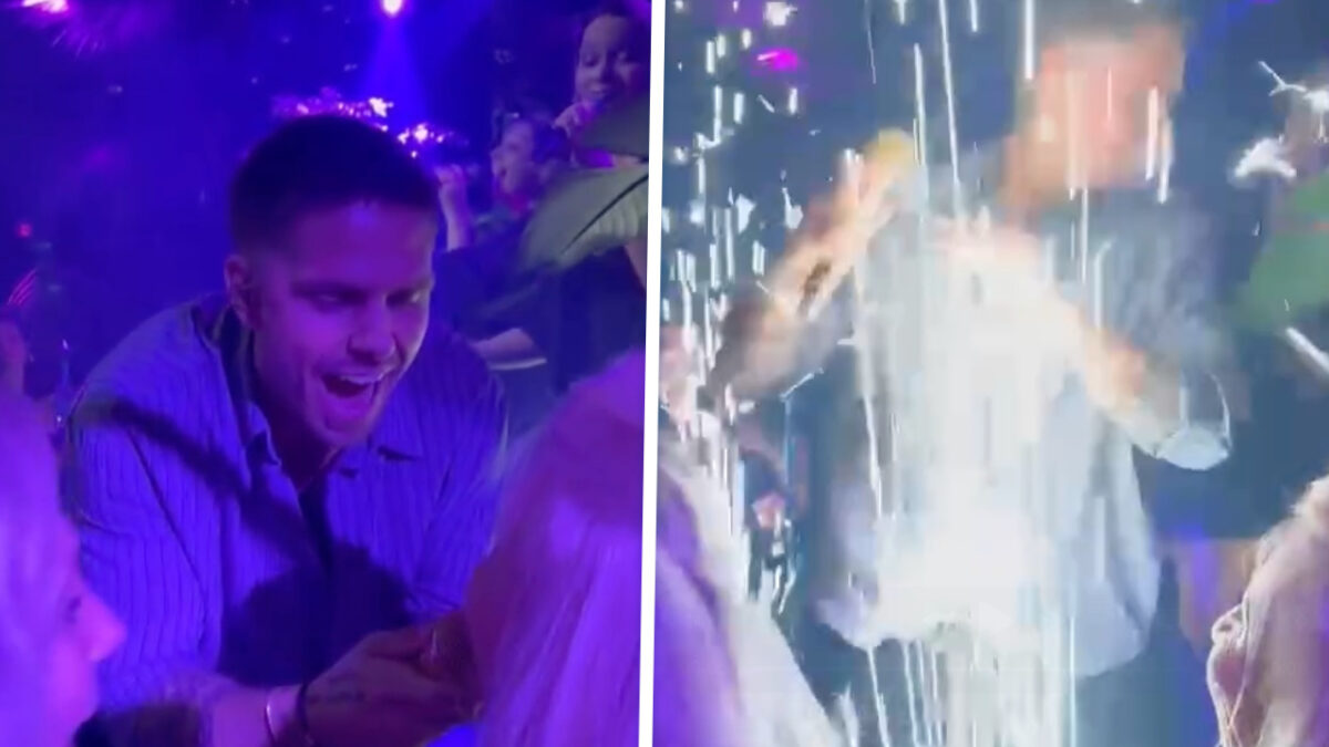 André Hazes moet het even zonder wenkbrauwen doen door ontploffend vuurwerk tijdens show