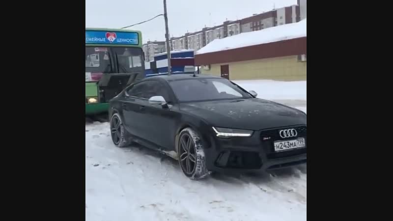 Audi heeft voorsprong door techniek en trekt vastgelopen bus uit de sneeuw