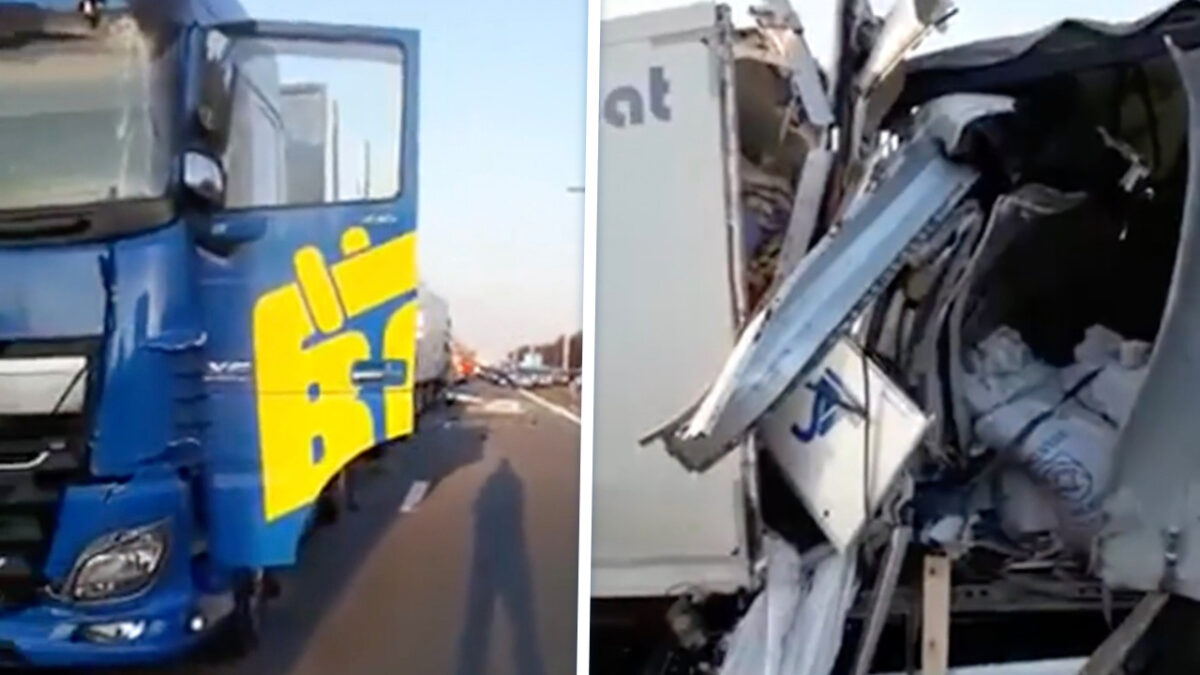 Waarom je nooit tussen 2 vrachtwagens moet gaan rijden