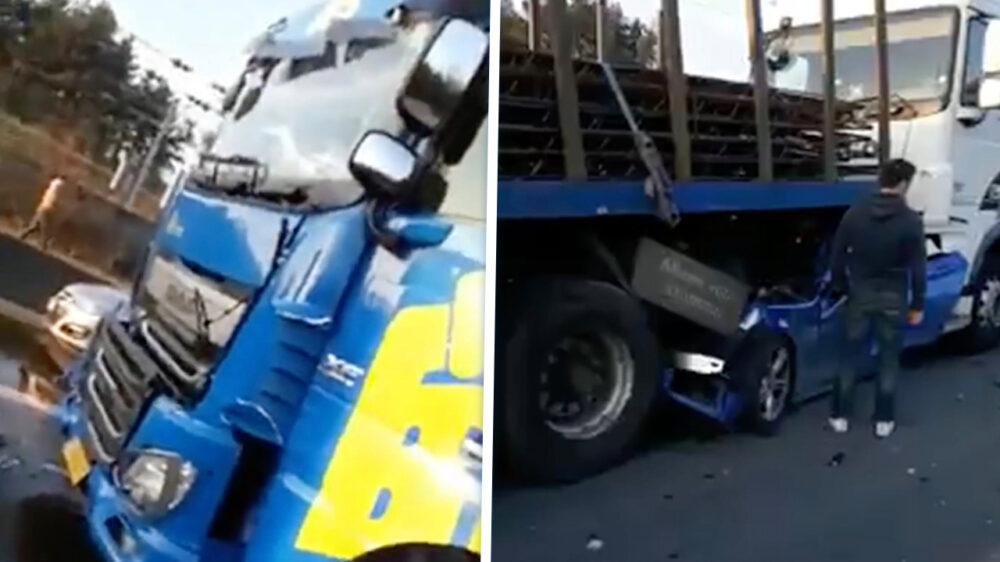 Waarom je nooit tussen 2 vrachtwagens moet gaan rijden