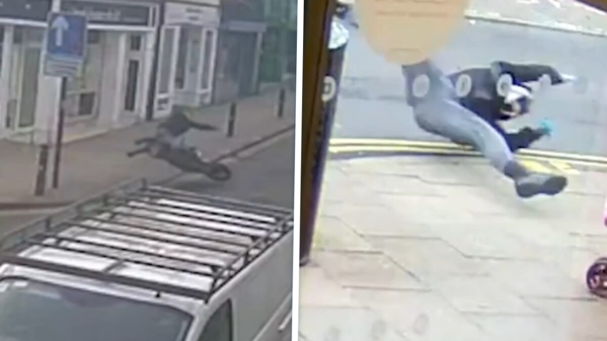 🚨 WATCH 🚨 @DurhamPolice has CCTV and body-worn camera footage that shows the moment when a fleeing rider lost control of his motorbike, causing serious injuries to himself and narrowly missing two young children and their mother.