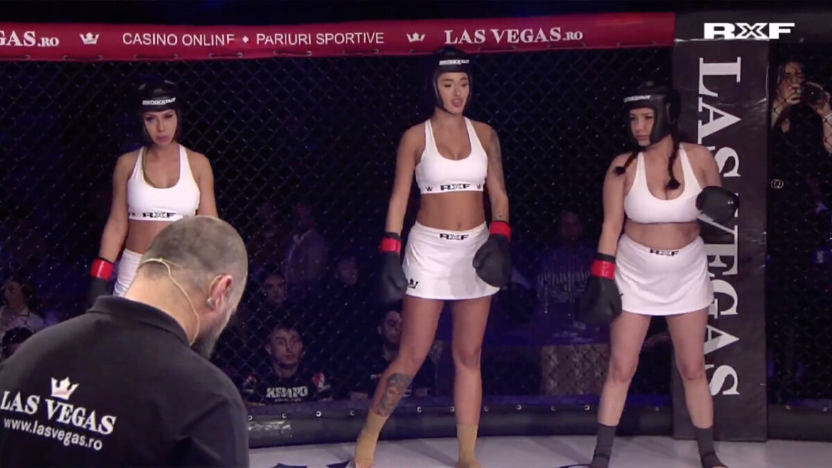 In Roemenië vond een bizarre MMA-wedstrijd plaats die de grenzen van gezond verstand tartte. Twee kerels, Costica Prisecaru en Sebastian Rechinu, stapten de ring in tegen drie dames die vooral bekend zijn van Instagram en OnlyFans: Alicia Bonita, Denisa Costea en Maria Adriana.
