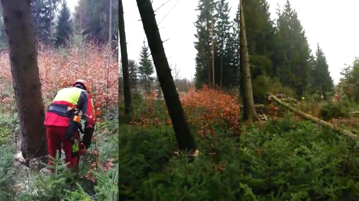 ACHTUNG, Baum fällt! En nog in de verkeerde richting ook...