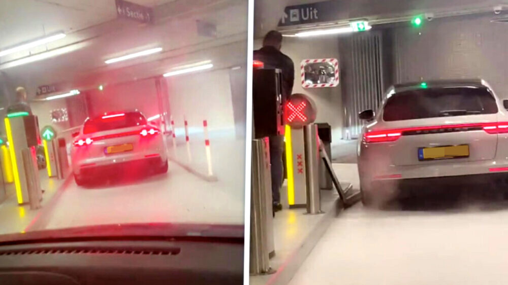Porsche-bestuurder beukt slagboom omver in Amsterdamse parkeergarage
