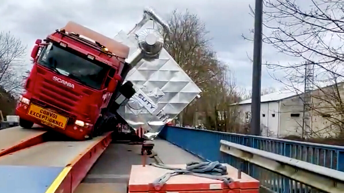 Het kan altijd groter, zwaarder en lomper, maar in het Franse Jarville-la-Malgrange namen ze die uitdaging nét iets te serieus. Maandagmiddag ging het namelijk flink mis toen een kolossaal transport van 165 ton kantelde op een brug en dreigde het kanaal in te duiken. Gratis show voor de locals, maar de chauffeur kon er minder om lachen.
