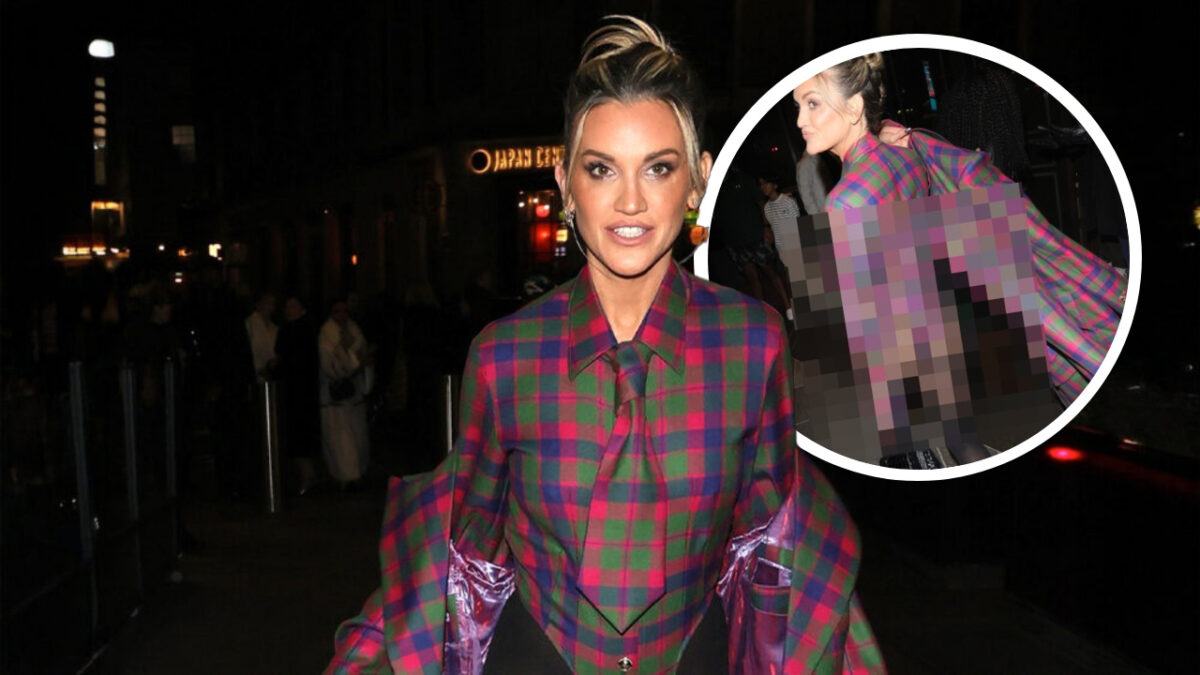 Pussycat Doll Ashley Roberts flaneert in schaamteloos strakke bodysuit op London Fashion Week