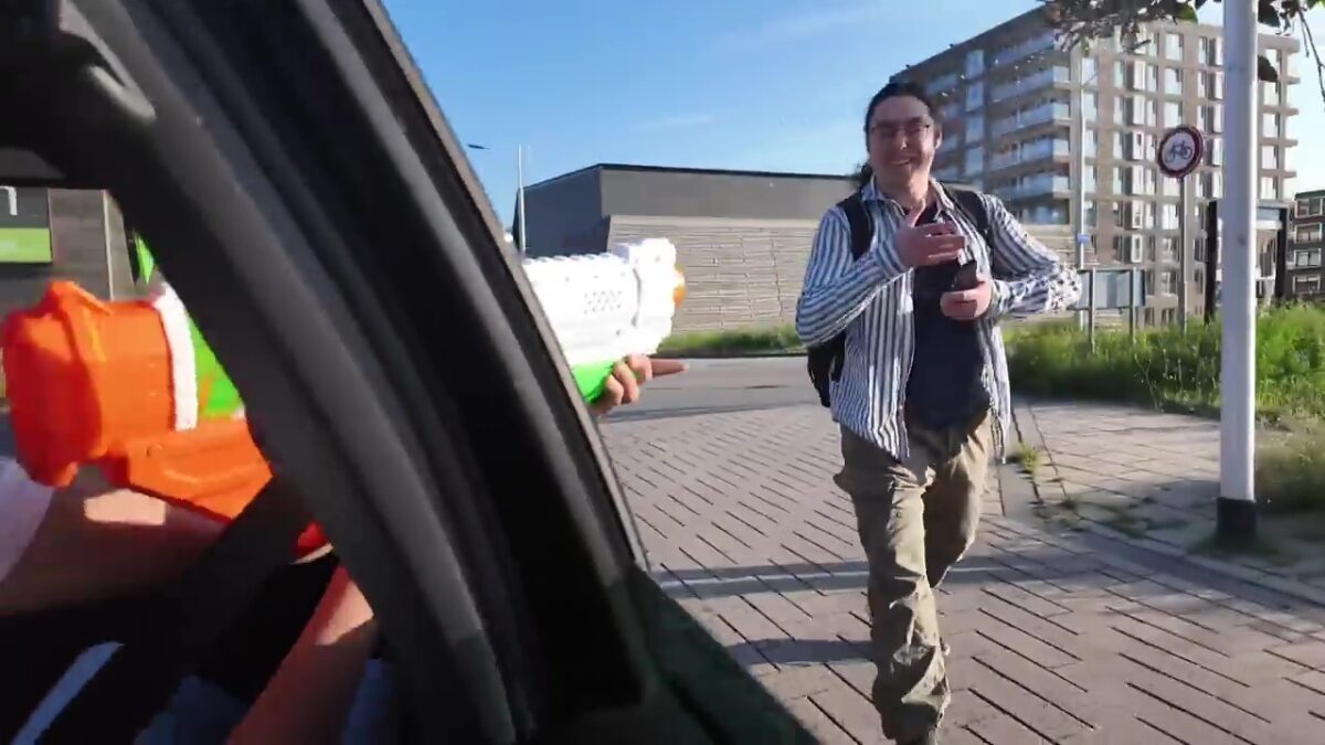 Dat 'ie niet alleen maar op zijn zolderkamertje zit stoer te doen, blijkt uit deze video waarin 'ie samen met zijn vrienden de straat op gaat om voorbijgangers vanuit zijn auto te bekogelen met waterballonnen. Hahaha, hilarisch. Oh nee, toch niet. Gelukkig zijn hun gooi-skills niet veel beter dan een basisschoolmeisje dat met haar verkeerde arm werpt en dat wordt beloond met een goedgeplaatste trap tegen hun auto.