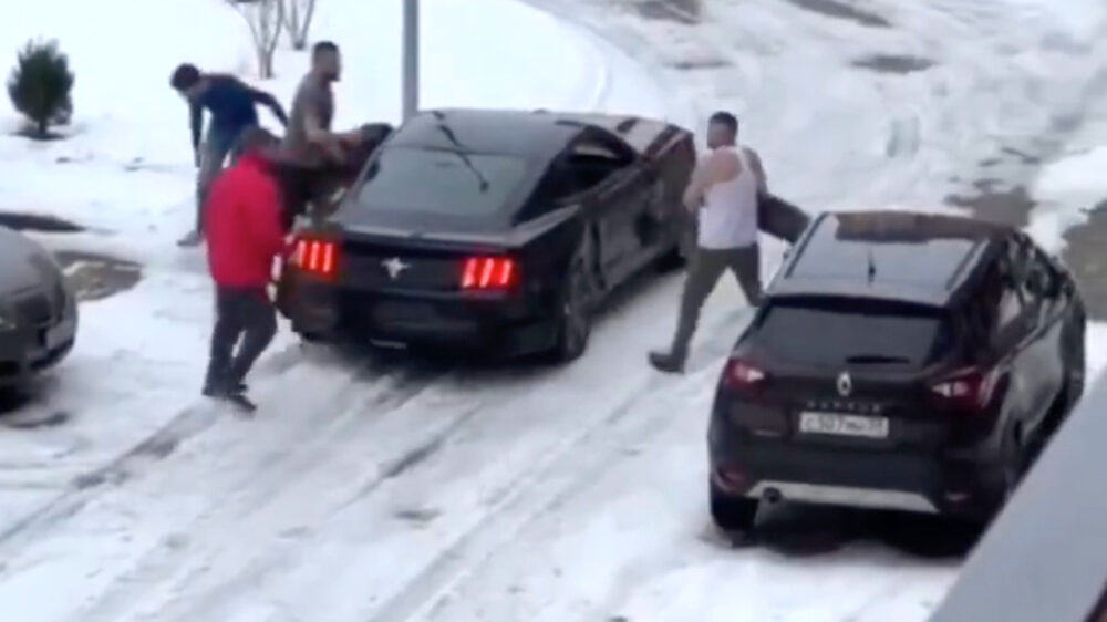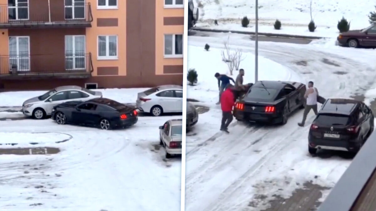 De beste man had blijkbaar een Mustang gehuurd en dacht waarschijnlijk dat 'ie in een of andere GTA 6-simulator zat. Omstanders probeerden hem te stoppen en hoe doe je dat in Rusland? Juist, met sneeuwballen. Spoiler: dat werkte voor geen meter.