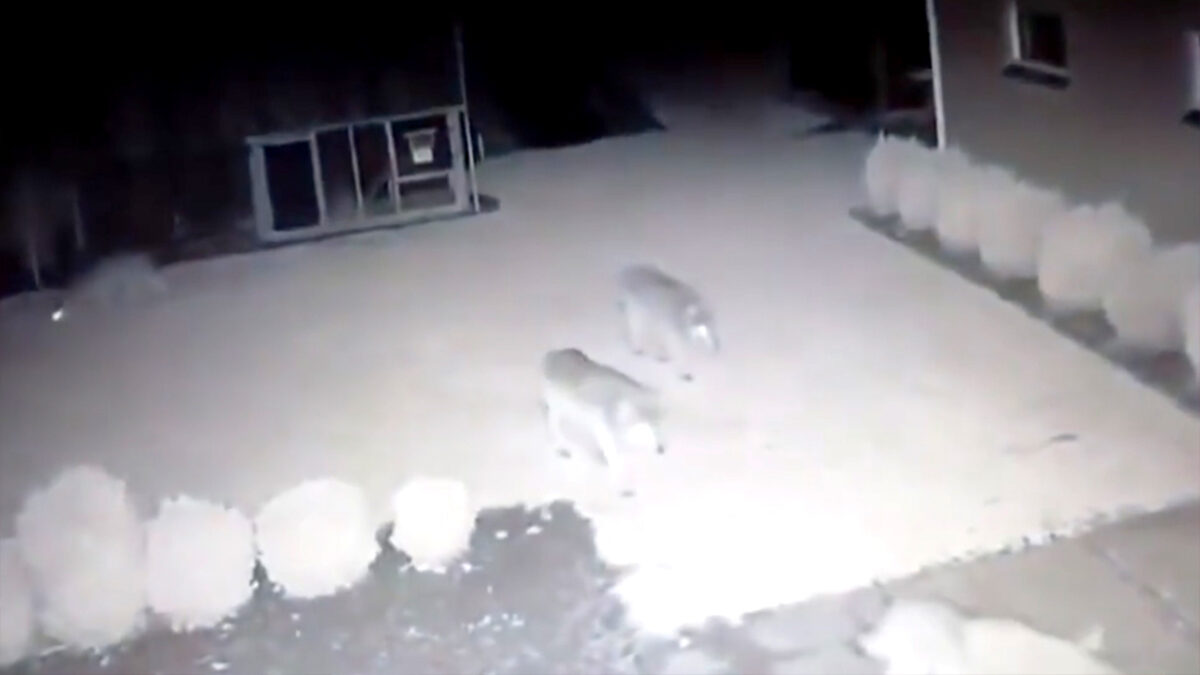 Daar kreeg een bewakingscamera namelijk een groepje wolven in jachtmodus voor de lens, terwijl ze rustig bij een woning rondsjokten. Stel dat je 's avonds nog even wat troep in de container kiepert en dan sta je ineens oog in oog met een stel hongerige viervoeters die normaal gesproken alleen in natuurdocumentaires voorbij ziet komen.