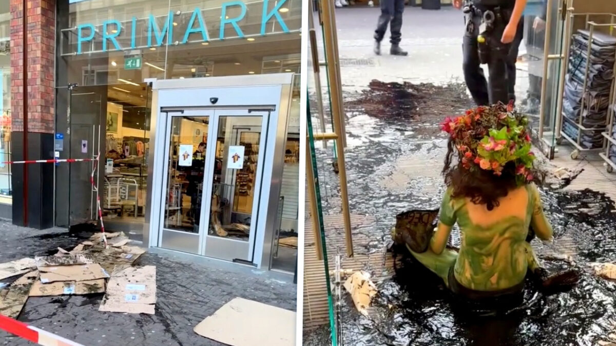 Bij de Primark op het Marktplein in Hoofddorp vonden ze het bij Extinction Rebellion (XR) weer eens tijd voor een showtje. Deze keer gooiden ze de vloer bij de ingangen en uitgangen vol met een zwart goedje en gingen ze in hun ondergoed in de deuropening staan. Want halfnaakt protesteren tegen "fast fashion" zal op een of andere manier wel logisch zijn.