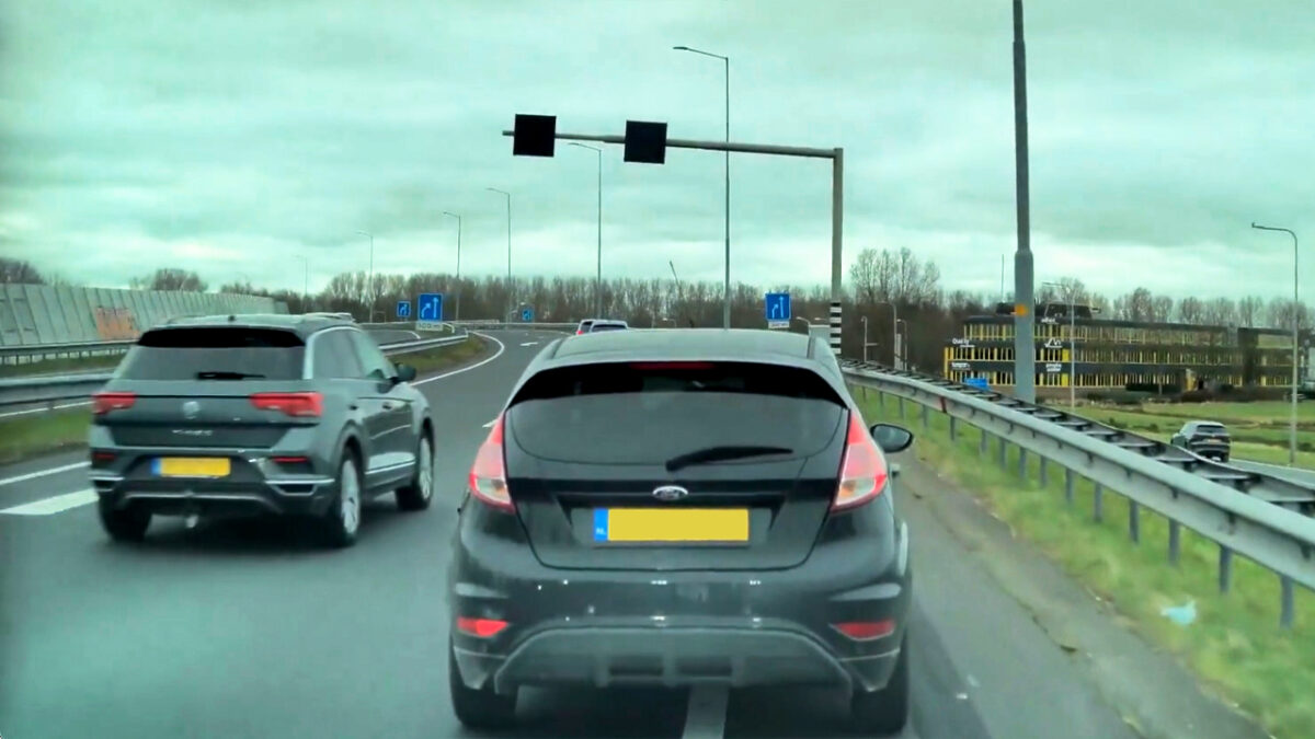 Idioot in Ford Fiesta mist afslag op de N11 en gooit 'm lekker in z'n achteruit