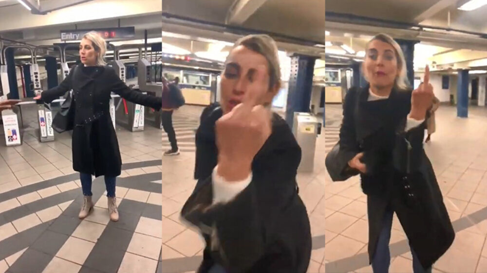 Dronken blondine laat haar klasse in de metro van New York City zien