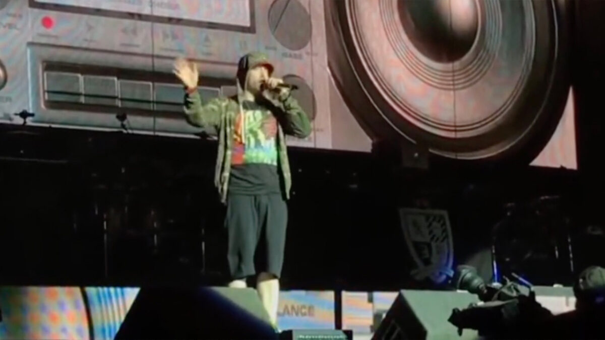Het zal je niet verrassen dat Eminem, op z'n zachtst gezegd, geen voorstander van The Donald is en tijdens zijn concert op het Reading Festival in Engeland liet hij het publiek dan ook massaal "When I say Fuck, you say Trump!" scanderen. Op social media wordt net gedaan of het nieuwe beelden zijn, maar niets is minder waar.
