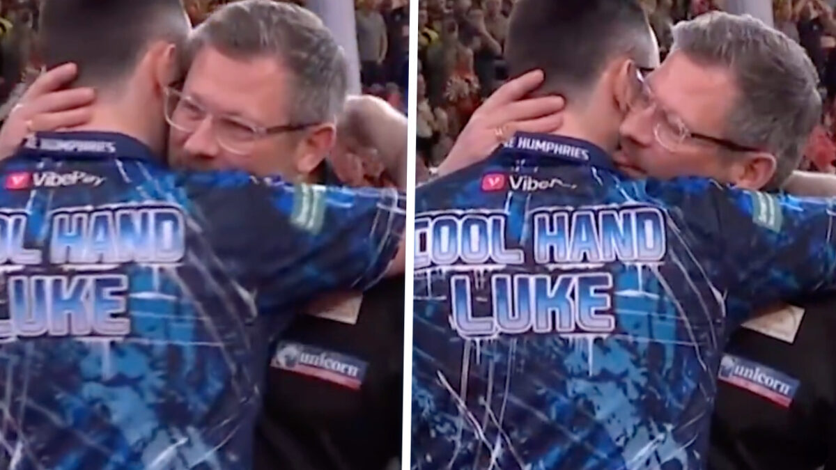 Tijdens de UK Open Darts zorgde James 'The Machine' Wade voor een bizar tafereel door zijn tegenstander, oud-wereldkampioen Luke Humphries, in de nek te likken op het podium.