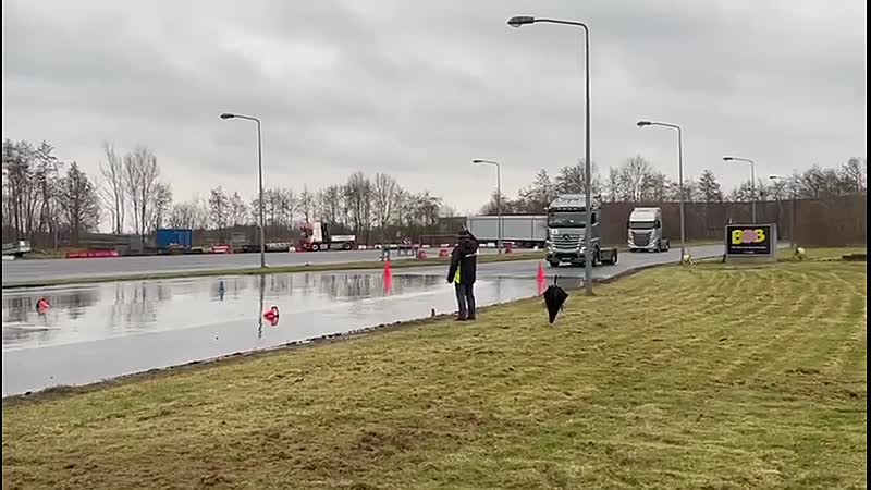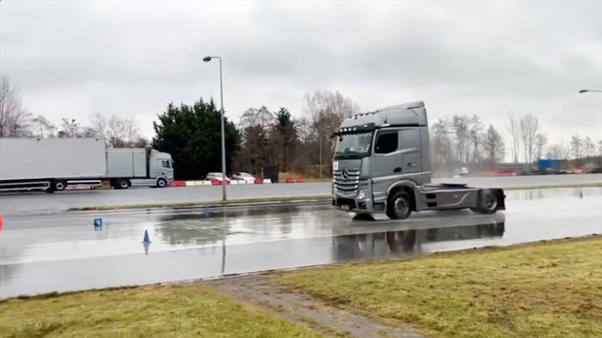 Vrachtwagenchauffeur ontdekt dat een glad wegdek niet echt lekker voor je remweg is
