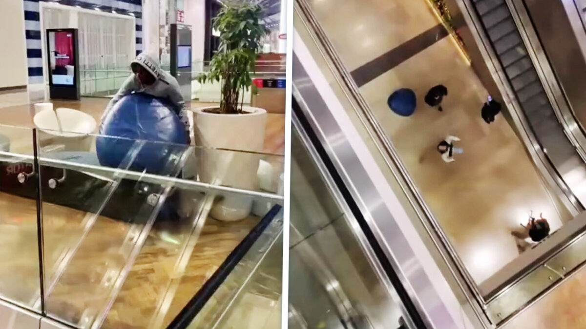 Idioot smijt stoel van 3e verdieping in druk winkelcentrum