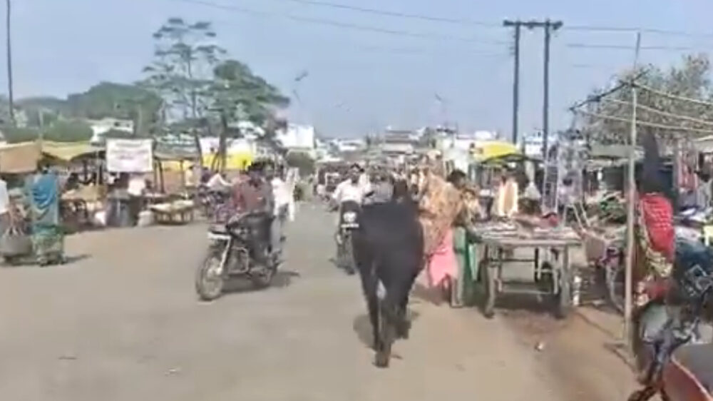 Dolle stier veroorzaakt chaos in de straten van stad in India