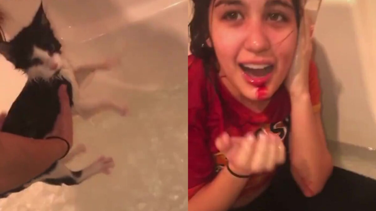 Een frisse en schone poes neemt de nodige risico's met zich mee Fails