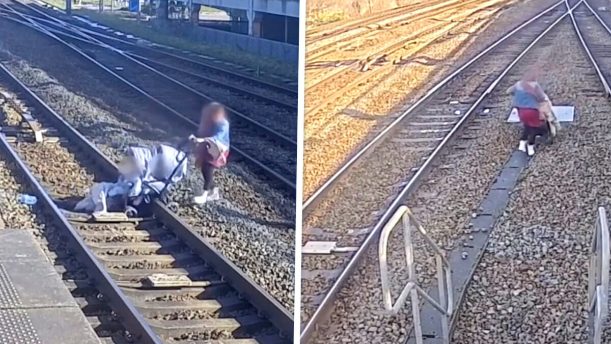 Woman drags stroller carrying two children across train tracks in horrifying video pic.twitter.com/tLEJgkfr2h